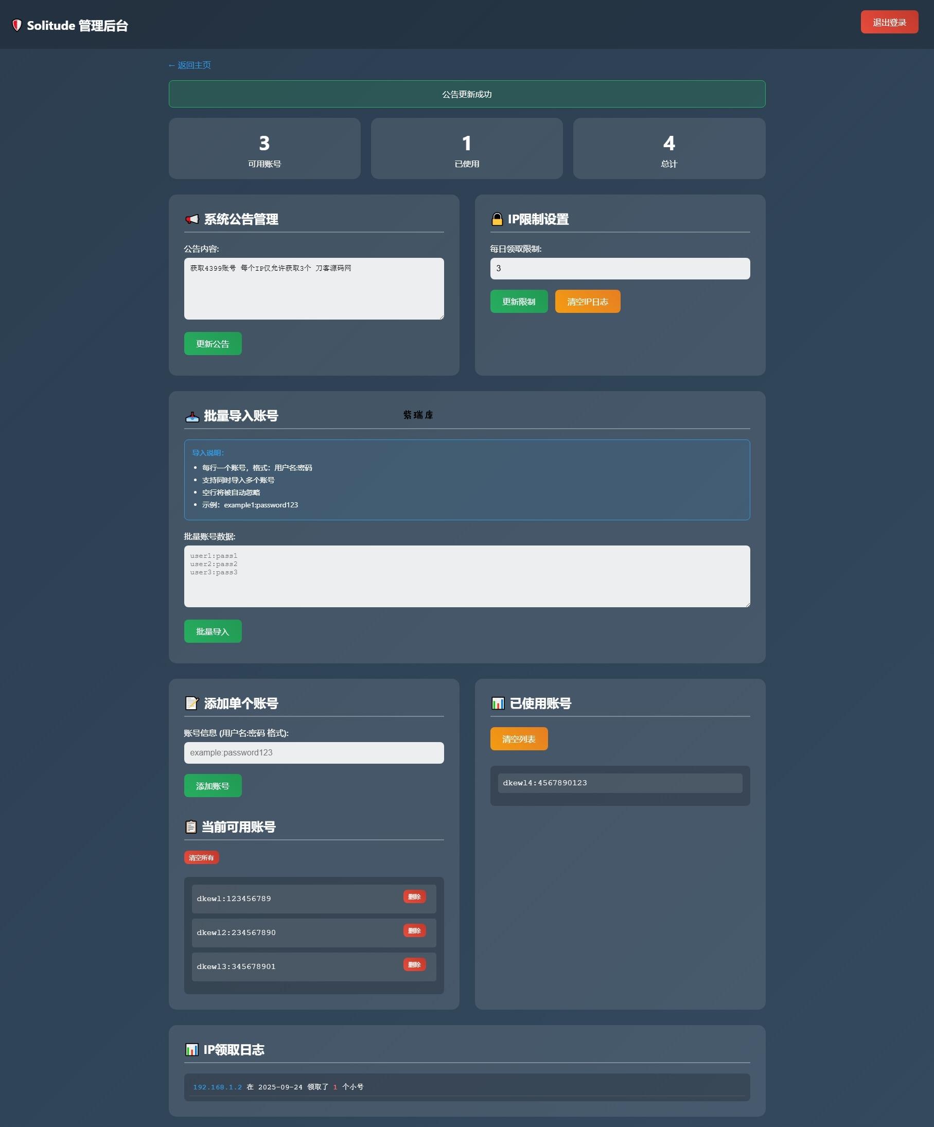 小号分发 卡密分发系统网站源码 轻量化紫瑞库1个月前更新关注私信08434 🔒 本文为简化版,更多资料已整理到公众号 点击免费领取 → 简介: 小号分发 卡密分发系统网站源码 轻量化 此为小号分发卡密系统源码,专用于分发小号库存账号或卡密等使用,不过规定每个IP仅能领取3次,也可视作小号分发工具。 已做过简易测试,感兴趣者可自行部署使用! 图片: 重要声明 下载本站资源即同意用户协议,本站程序只是提供给开发者学习研究。 如果遇到付费才可观看的文章,建议升级终身VIP。全站所有资源"任意下免费看"。 小号分发 卡密分发系统网站源码 轻量化此内容为付费资源,请付费后查看R币39.9黄金会员R币9.9钻石会员免费立即购买您当前未登录!建议登陆后购买,可保存购买订单付费资源已售 11© 版权声明文章版权归原作者所有,本站只做转载和学习,未经允许请勿转载。THE END源码资源 喜欢就支持一下吧点赞34 分享QQ空间微博QQ好友海报分享复制链接收藏