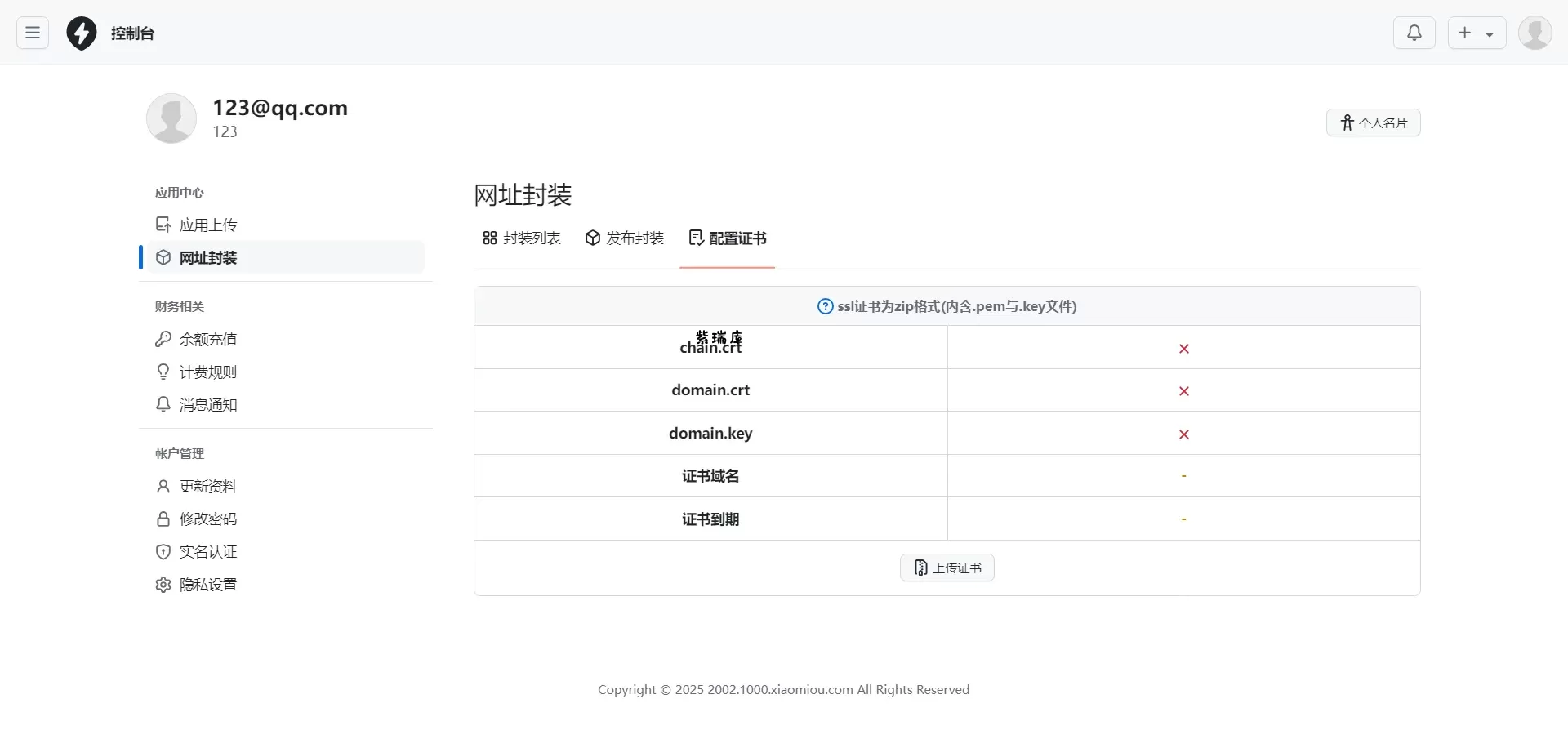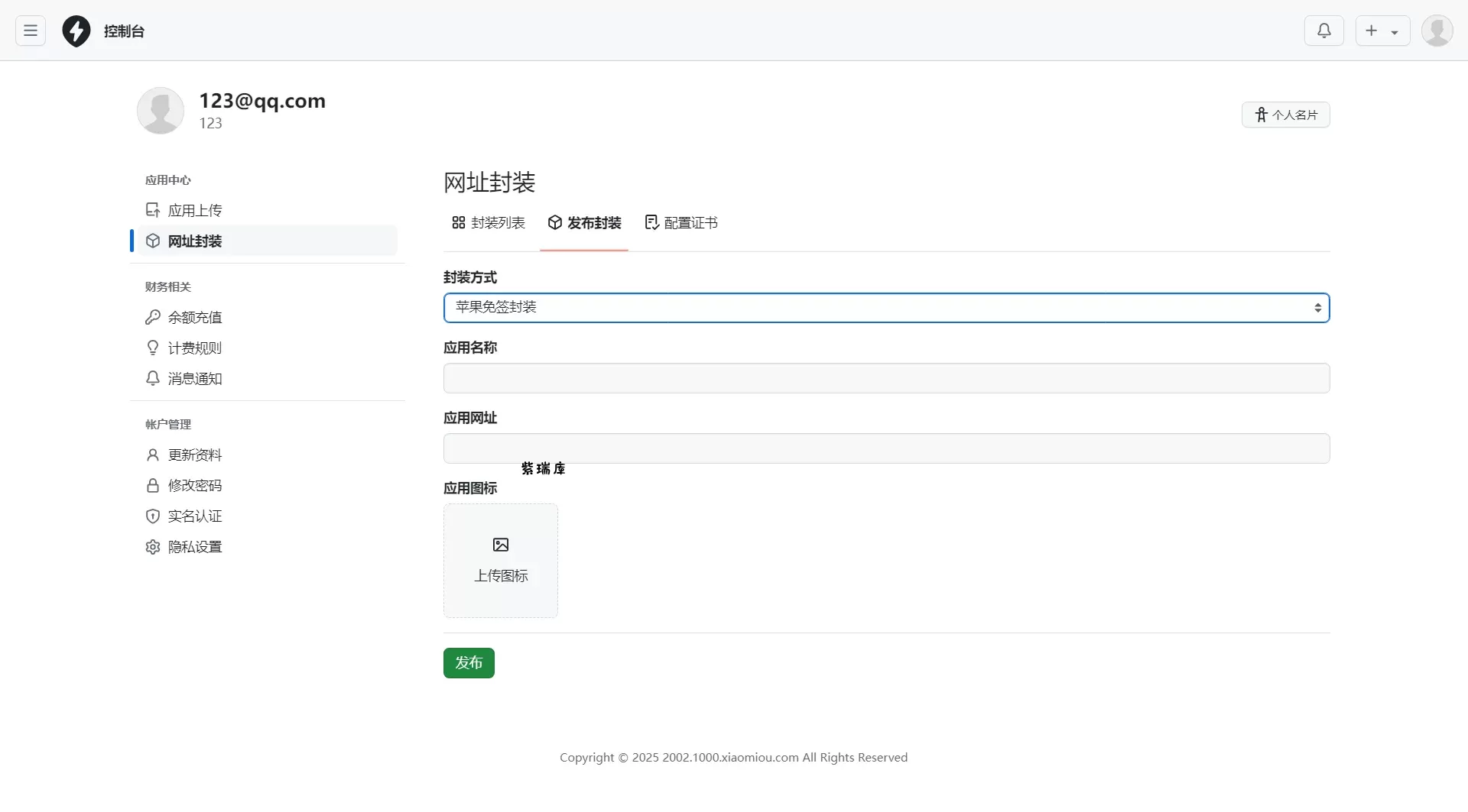 需要上传签名证书,安卓测试了一下不行!自行研究吧!